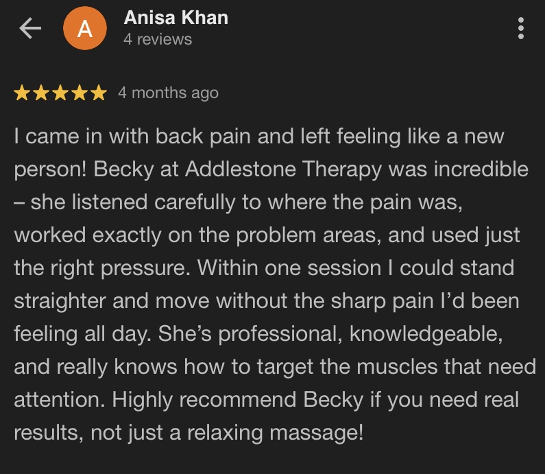 Regular massage can aid recovery from physical activity, calm the nervous system, and contribute to better sleep and overall wellbeing. At Addlestone Therapy, each massage is tailored to your individual needs, providing a personalised and supportive approach to self-care.